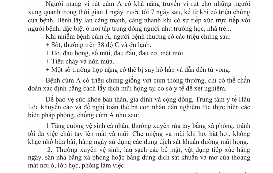 BÀI TUYÊN TRUYỀN Phòng chống bệnh cúm A