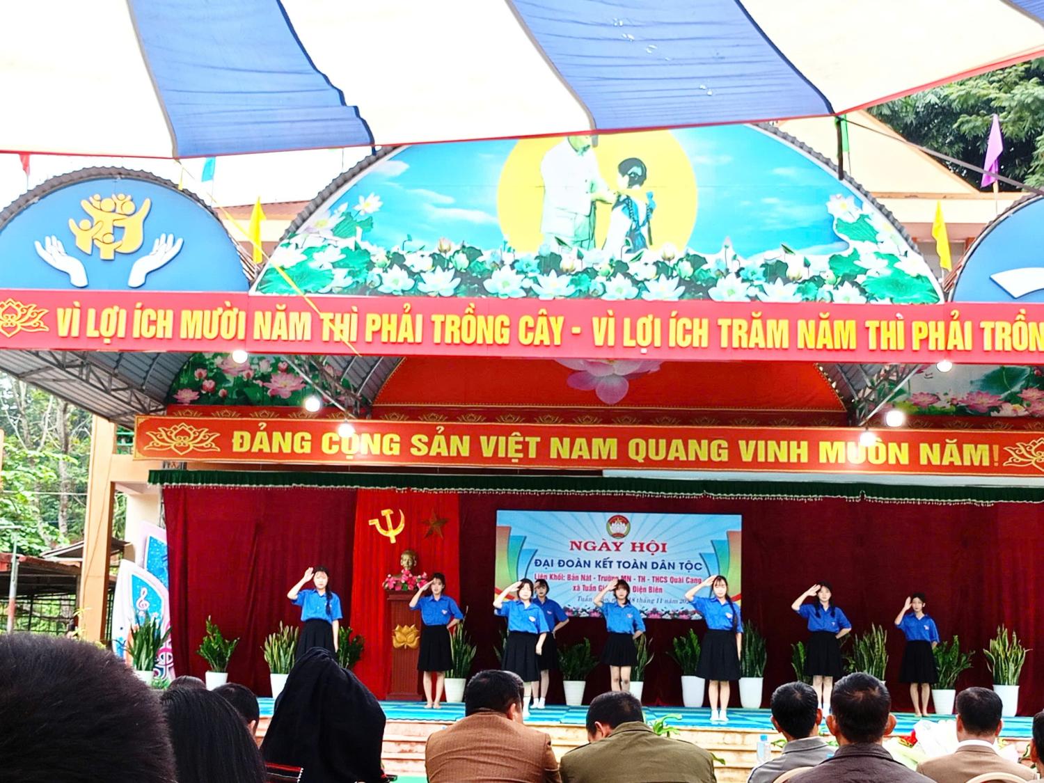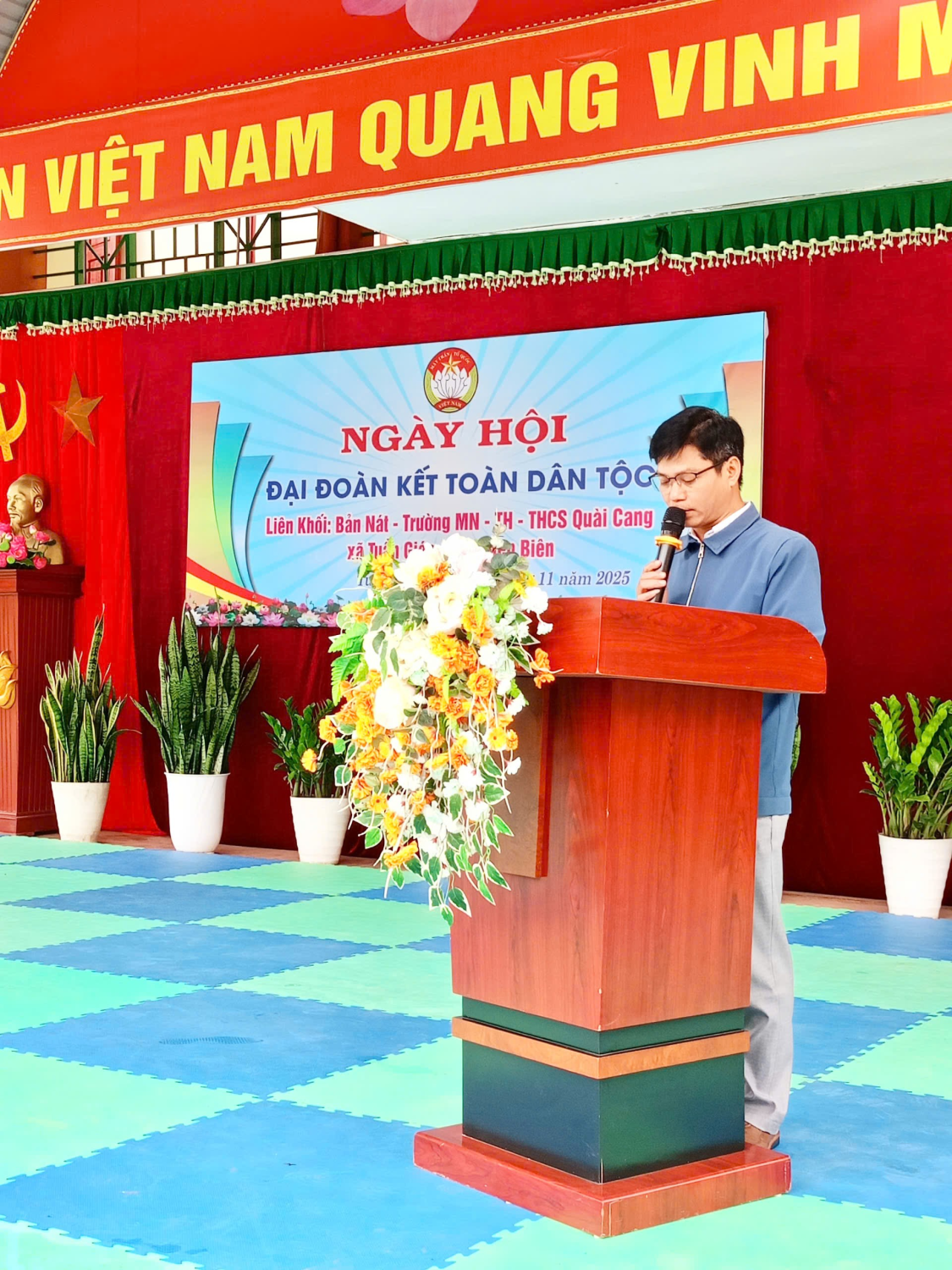 Sáng ngày 18/11/2025, tại sân Trường THCS Quài Cang, Ngày Đại đoàn kết toàn dân tộc bản Nát được tổ chức trong không khí trang trọng, vui tươi và đầm ấm. Đây là dịp để thầy cô giáo, học sinh và nhân dân cùng ôn lại truyền thống đoàn kết, gắn bó lâu đời của cộng đồng các dân tộc, đồng thời thắt chặt hơn nữa tình cảm gắn kết giữa nhà trường và địa phương. Lãnh đạo tham dự Ngày hội tặng hoa và phát biểu