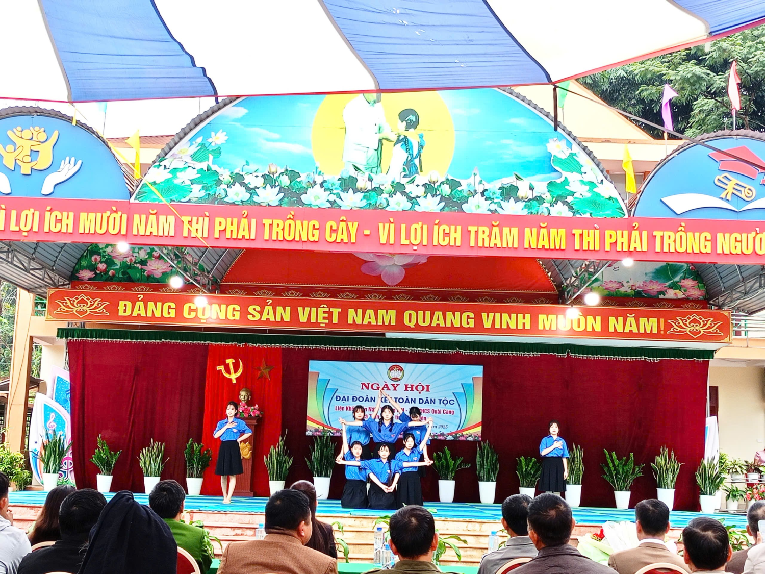 Ngày Đại đoàn kết toàn dân tộc năm nay không chỉ là một sự kiện văn hóa – xã hội giàu ý nghĩa, mà còn là dịp để giáo dục học sinh biết trân trọng và gìn giữ những giá trị truyền thống tốt đẹp của quê hương. Niềm vui, tiếng cười cùng tinh thần đồng lòng lan tỏa khắp sân trường đã tạo nên một ngày hội ấm áp, gần gũi và đầy cảm xúc, để lại dấu ấn đẹp trong lòng cộng đồng. Hình ảnh học sinh trường THCS Quài Cang tham gia Ngày hội