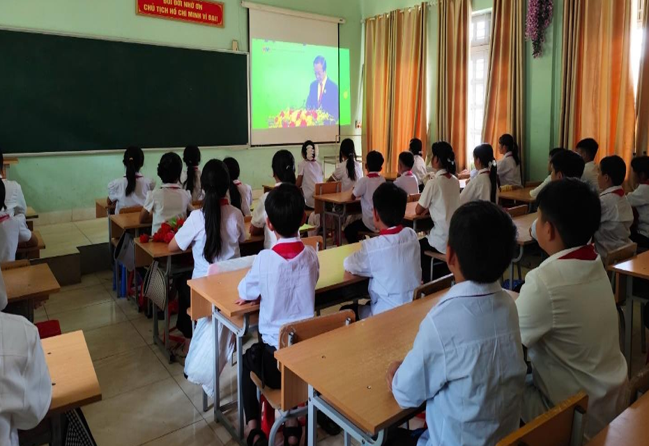 Một dấu ấn đặc biệt của lễ Khai giảng năm nay là khoảnh khắc thầy và trò cùng tham gia Chương trình Khai giảng trực tuyến toàn quốc. Lần đầu tiên, tất cả các cơ sở giáo dục trên cả nước đồng loạt thực hiện nghi thức chào cờ, hát Quốc ca trong cùng một thời khắc. Qua màn hình kết nối, thầy trò được lắng nghe những thông điệp chúc mừng và nhắn nhủ đầy xúc động từ Bác Tô Lâm – Tổng Bí thư Ban chấp hành Trung ương Đảng và các bác lãnh đạo Đảng, Nhà nước nguồn động viên mạnh mẽ để tiếp tục kiên định với lý tưởng “trồng người” và khát vọng đổi mới sáng tạo.