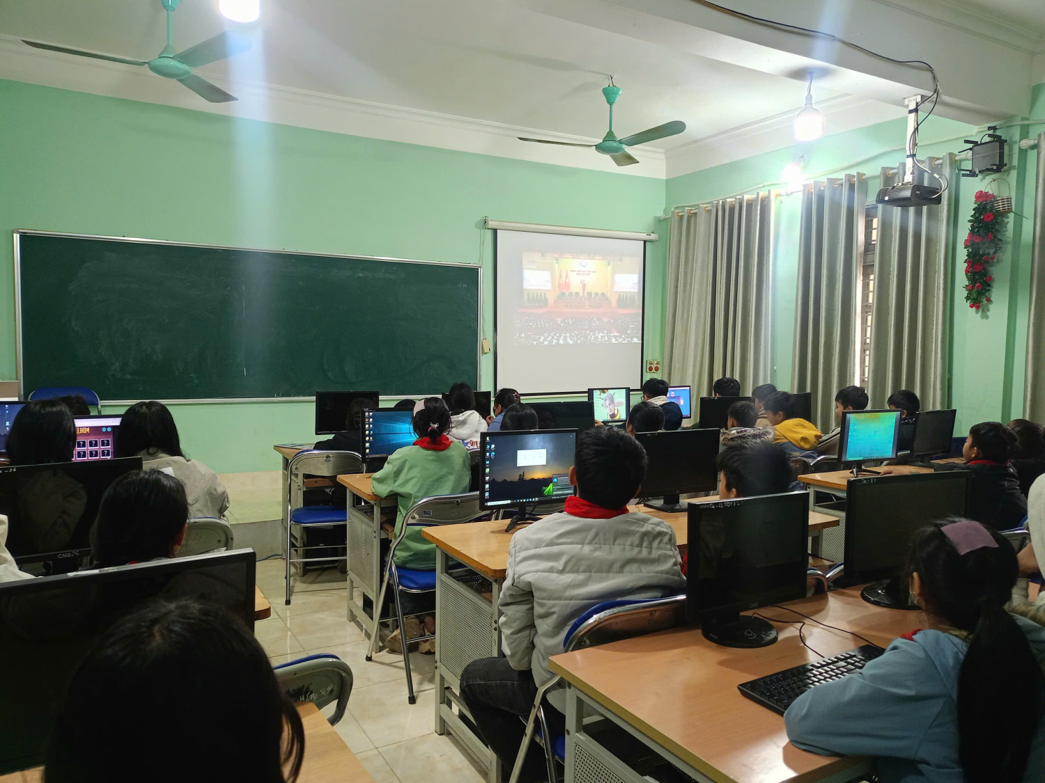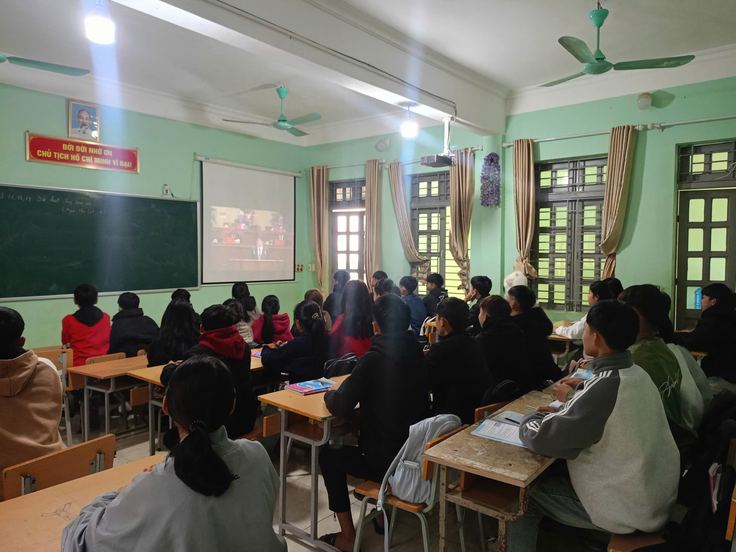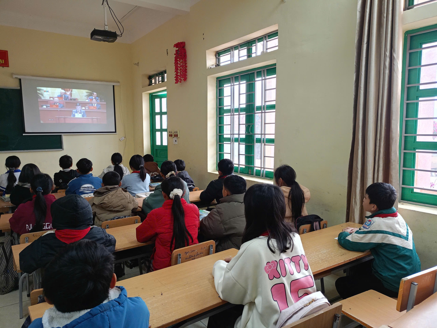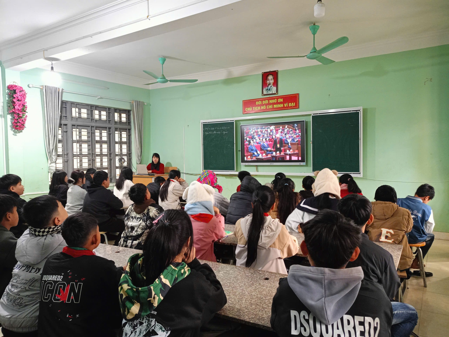 Trong không khí trang nghiêm, thầy và trò nhà trường chăm chú theo dõi từng nội dung của Lễ khai mạc, đặc biệt quan tâm đến những định hướng chiến lược của Đảng về phát triển đất nước trong giai đoạn mới, trong đó giáo dục và đào tạo tiếp tục được xác định là quốc sách hàng đầu, là nền tảng cho phát triển bền vững. Hình ảnh học sinh các lớp theo dõi khai mạc Đại hội Thông qua việc theo dõi Đại hội, tập thể sư phạm Trường THCS Quài Cang xã Tuần Giáo càng thêm tin tưởng vào sự lãnh đạo sáng suốt của Đảng, thêm vững vàng niềm tin vào tương lai tươi sáng của dân tộc. Đây cũng là dịp để mỗi cán bộ, giáo viên, nhân viên tự soi lại trách nhiệm của mình, không ngừng đổi mới, nâng cao chất lượng dạy học; để mỗi học sinh thêm ý thức rèn luyện, phấn đấu học tập, trở thành những công dân có ích cho quê hương, đất nước. Hướng về Đại hội XIV của Đảng, Trường THCS Quài Cang xã Tuần Giáo quyết tâm thi đua dạy tốt – học tốt, xây dựng nhà trường ngày càng vững mạnh, góp phần thiết thực vào việc thực hiện thắng lợi Nghị quyết Đại hội, chung tay xây dựng đất nước Việt Nam hùng cường, phồn vinh, hạnh phúc.