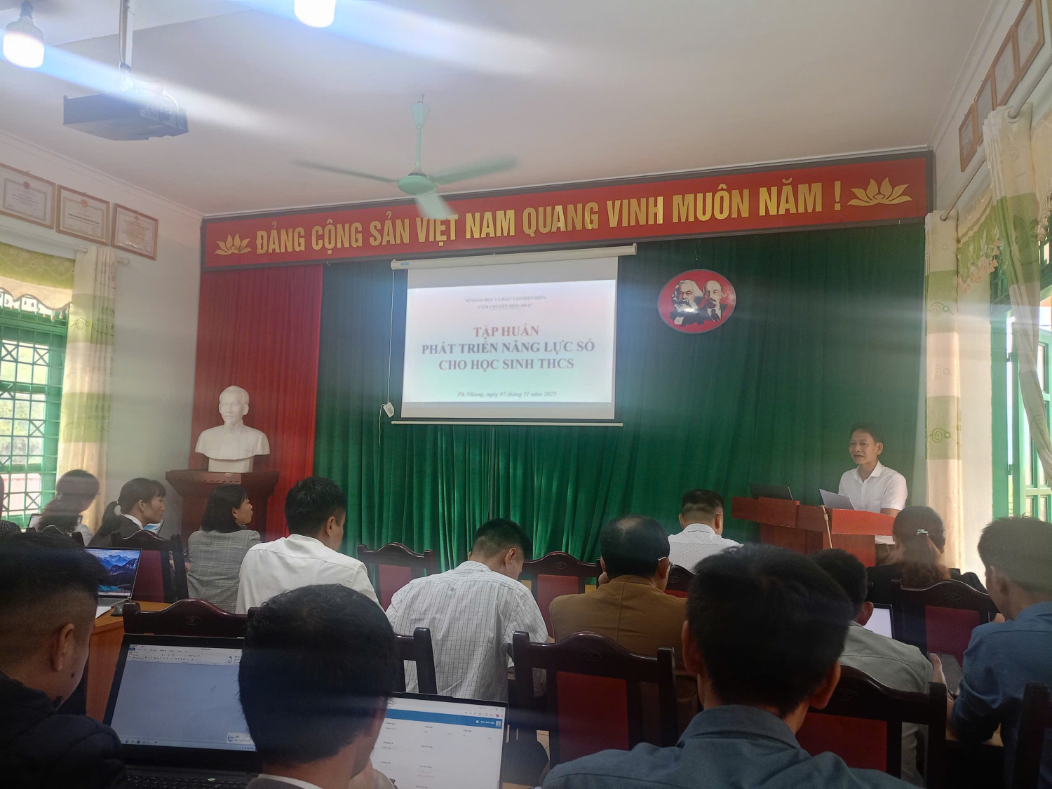 PHÁT TRIỂN NĂNG LỰC SỐ HÀNH TRANG CHO HỌC SINH TRONG KỶ NGUYÊN MỚI Trong thời đại chuyển đổi số diễn ra mạnh mẽ trên toàn cầu, giáo dục không chỉ dừng lại ở việc truyền thụ kiến thức, mà còn hướng tới phát triển năng lực, kỹ năng và khả năng thích ứng cho người học. Nhằm thực hiện định hướng của Bộ Giáo dục và Đào tạo về phát triển năng lực số trong nhà trường phổ thông, ngày 07/11/2025, Cụm chuyên môn số 7 cấp THCS đã tổ chức Sinh hoạt Chuyên đề 02 tại Trường THCS Rạng Đông với sự tham gia của cán bộ quản lý và giáo viên đến từ các đơn vị trong cụm.